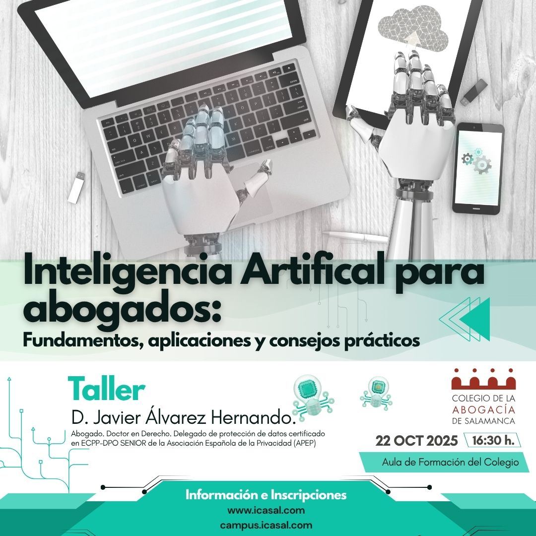 Con este objetivo, el Ilustre Colegio de la Abogacía de Salamanca organiza una nueva jornada formativa dedicada a la aplicación práctica de la Inteligencia Artificial en nuestra profesión.